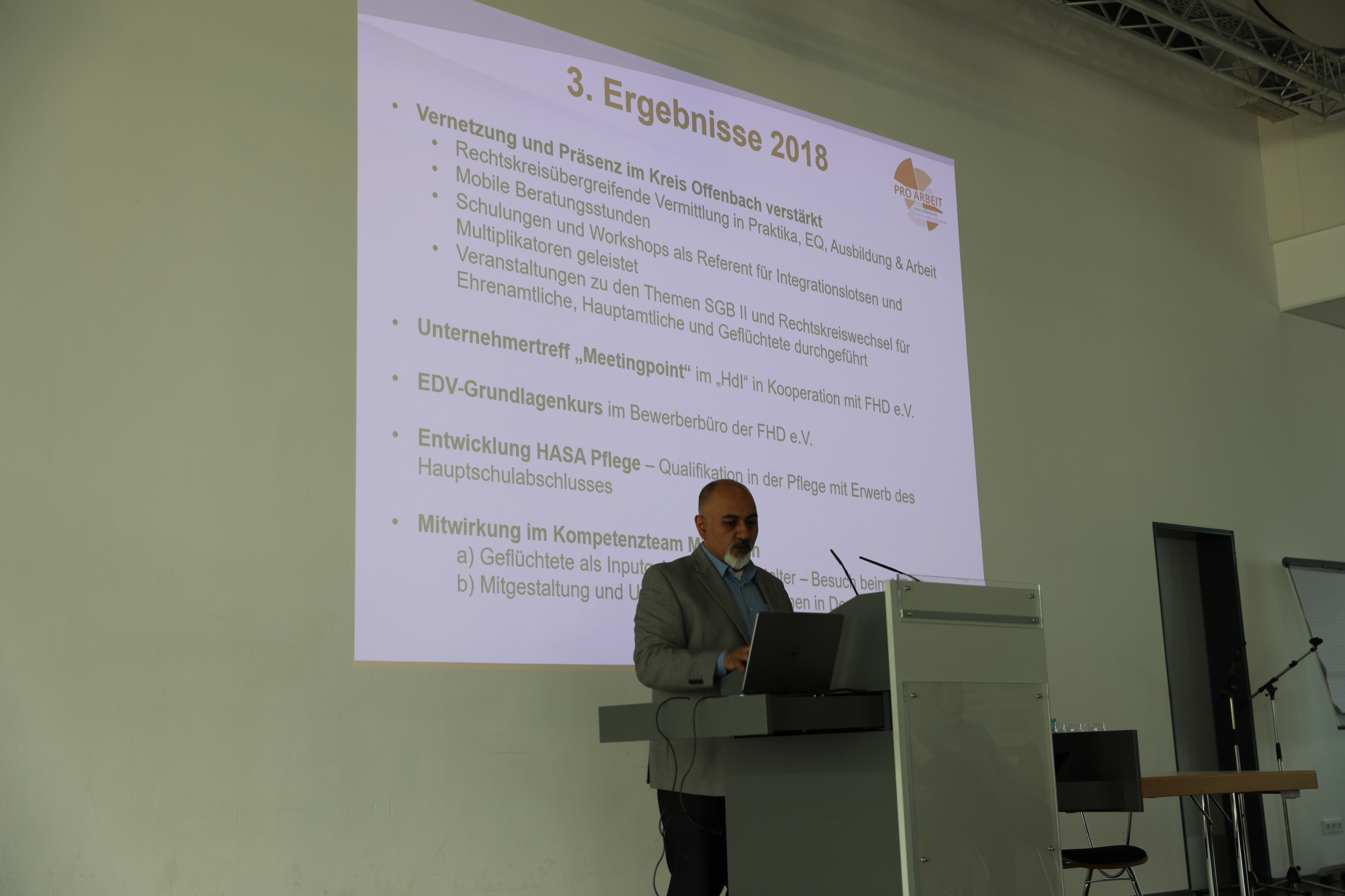 Über 30 Vertreterinnen und Vertreter, der im Kreis Offenbach tätigen Bildungsträger, fanden sich am 11.04.2019 im Haus des Lebenslangen Lernens in Dreieich ein. Sie waren der Einladung zum Trägertag 2019 der Pro Arbeit gefolgt. Neben der Darstellung der generellen Bedarfslage der Pro Arbeit im Jahr 2019, gab es Impulsvorträge zu den Themen „Sprachförderung“, „Grundbildung“, „Drittmittelförderung“, „Haus der Integration“, „Datenschutz“ und „16i und Soziale Teilhabe“. Zwischen den Themenblöcken wurden die Pausen von den verschiedenen Akteuren dazu genutzt, um ins Gespräch miteinander zu kommen.